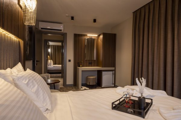 King Suite kategorisindeki odamız 1+1 konseptiyle 2 ayrı yatak odasından oluşmaktadır. Panoramik deniz manzarası bulunan dairemizde maximum 4 yetişkin +2 çocuk konaklama kapasitesindeki odalarımızdandır.
